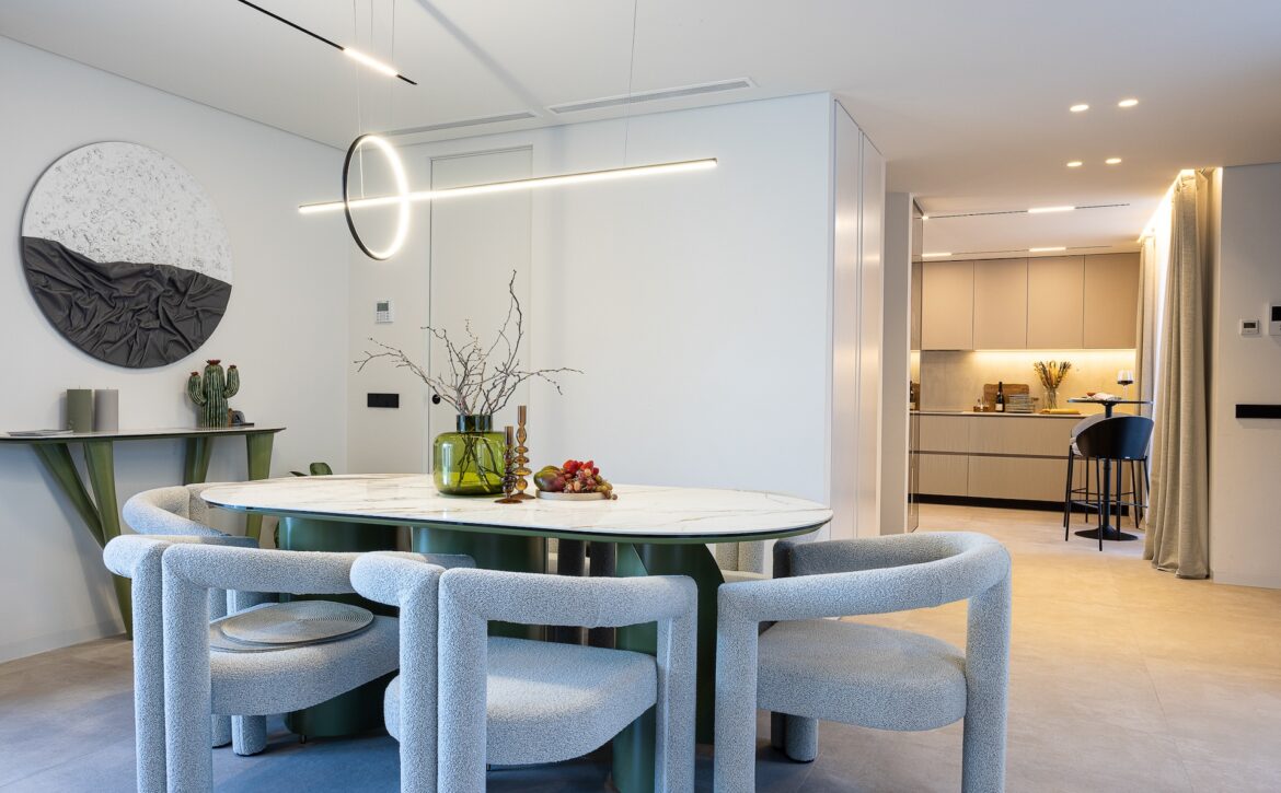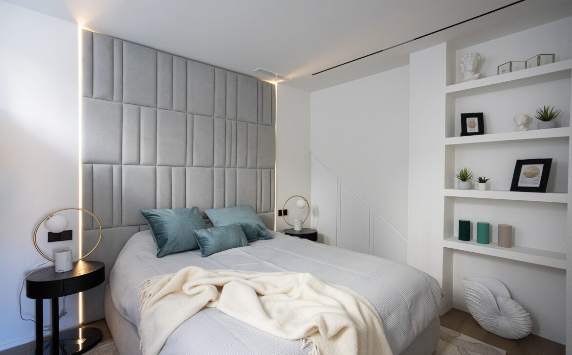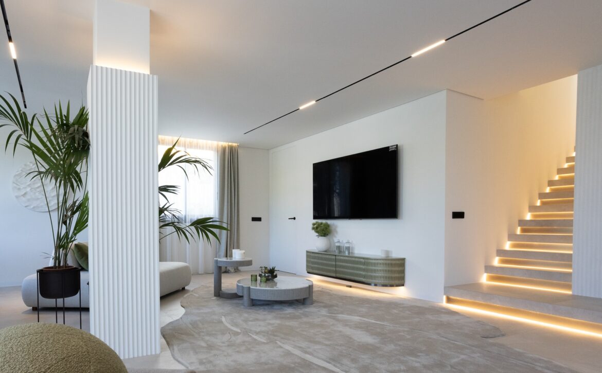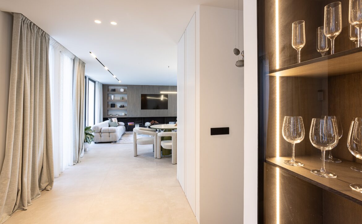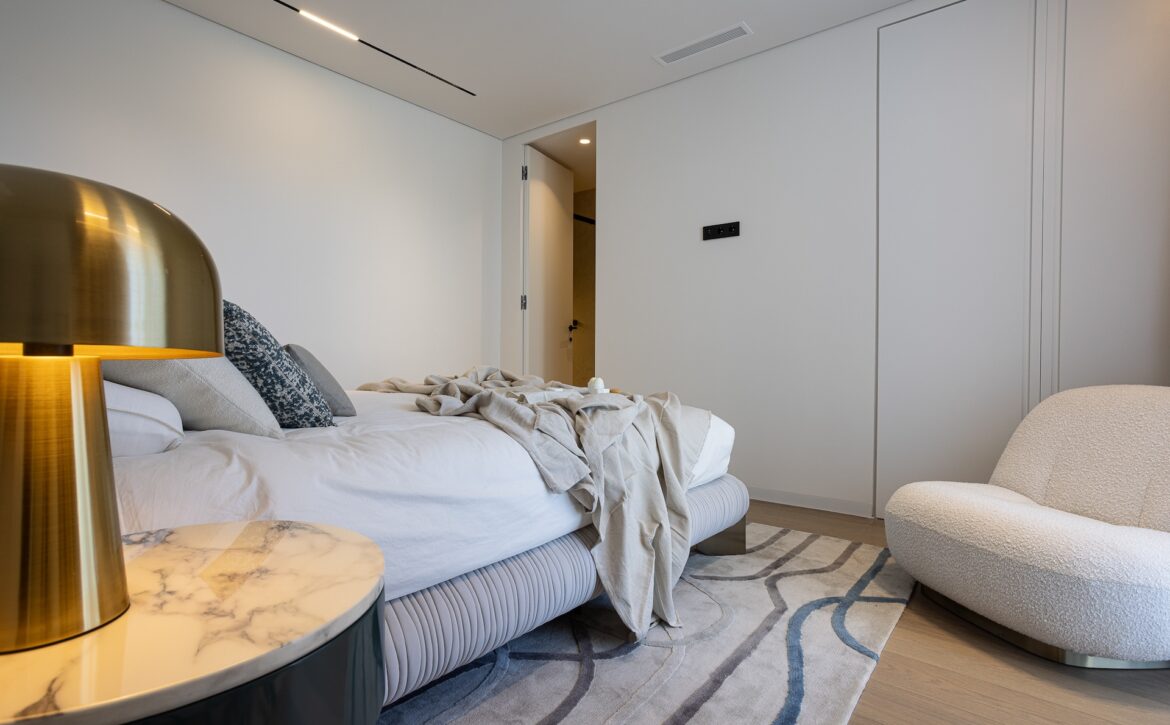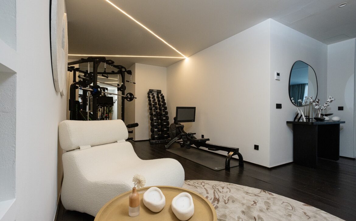 Recently constructed in 2023, the property boasts a sleek and contemporary design while ensuring all the comforts of a sophisticated home. Spanning a plot of 530m² with a built area of 268m² and an expansive 166m² terrace, the east-facing villa features a spacious, open-plan living and dining area, a state-of-the-art kitchen, and five well-appointed bedrooms. The villa also includes a fully equipped gym, a relaxing sauna, and ample storage space in the basement. Outside, the beautifully landscaped garden and pristine swimming pool create a tranquil oasis, perfect for outdoor dining and entertaining.